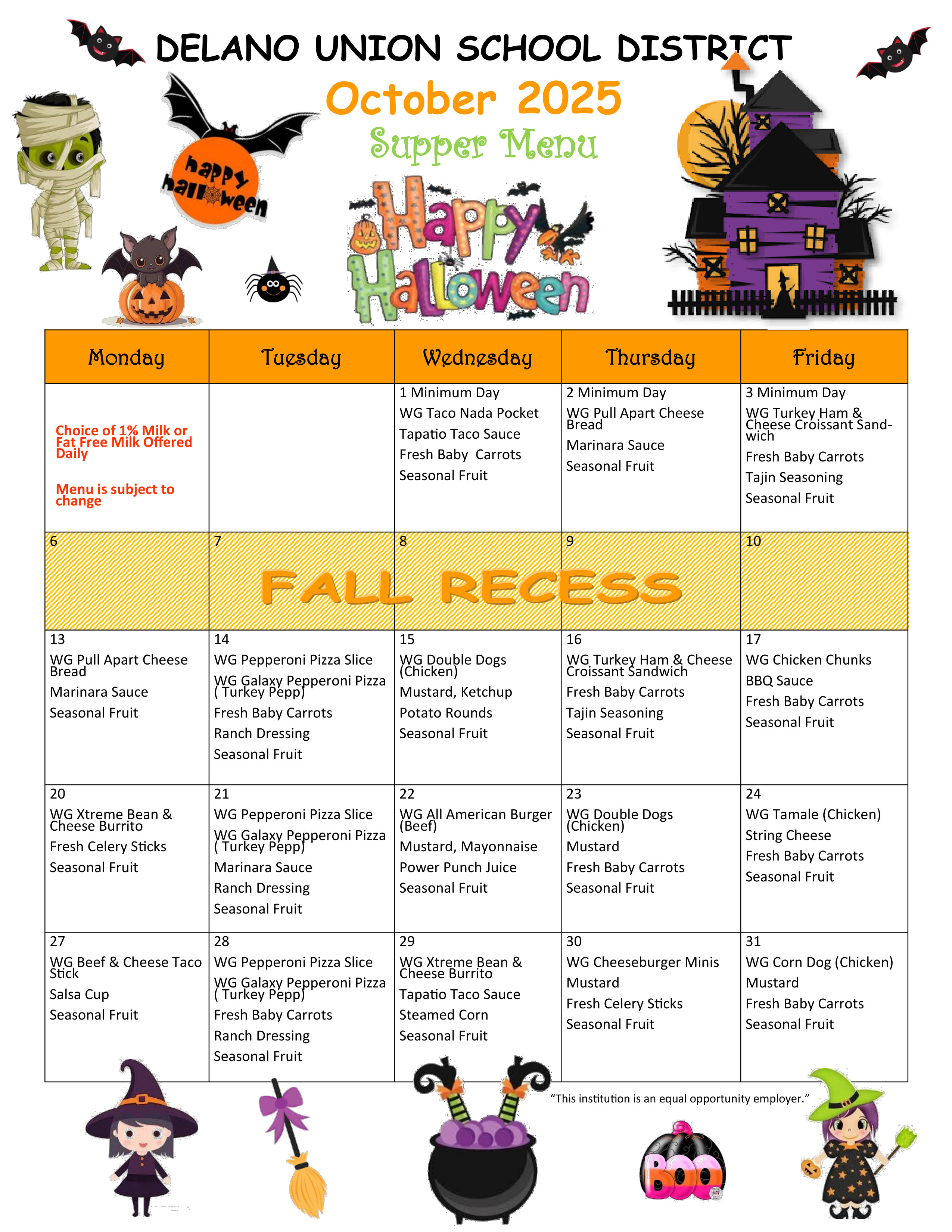 Students who would like to pick up supper may do so after the dismissal bell rings. Please understand that if your child decides to pick up supper they will be exiting campus after their dismissal time. Thank you for your support.